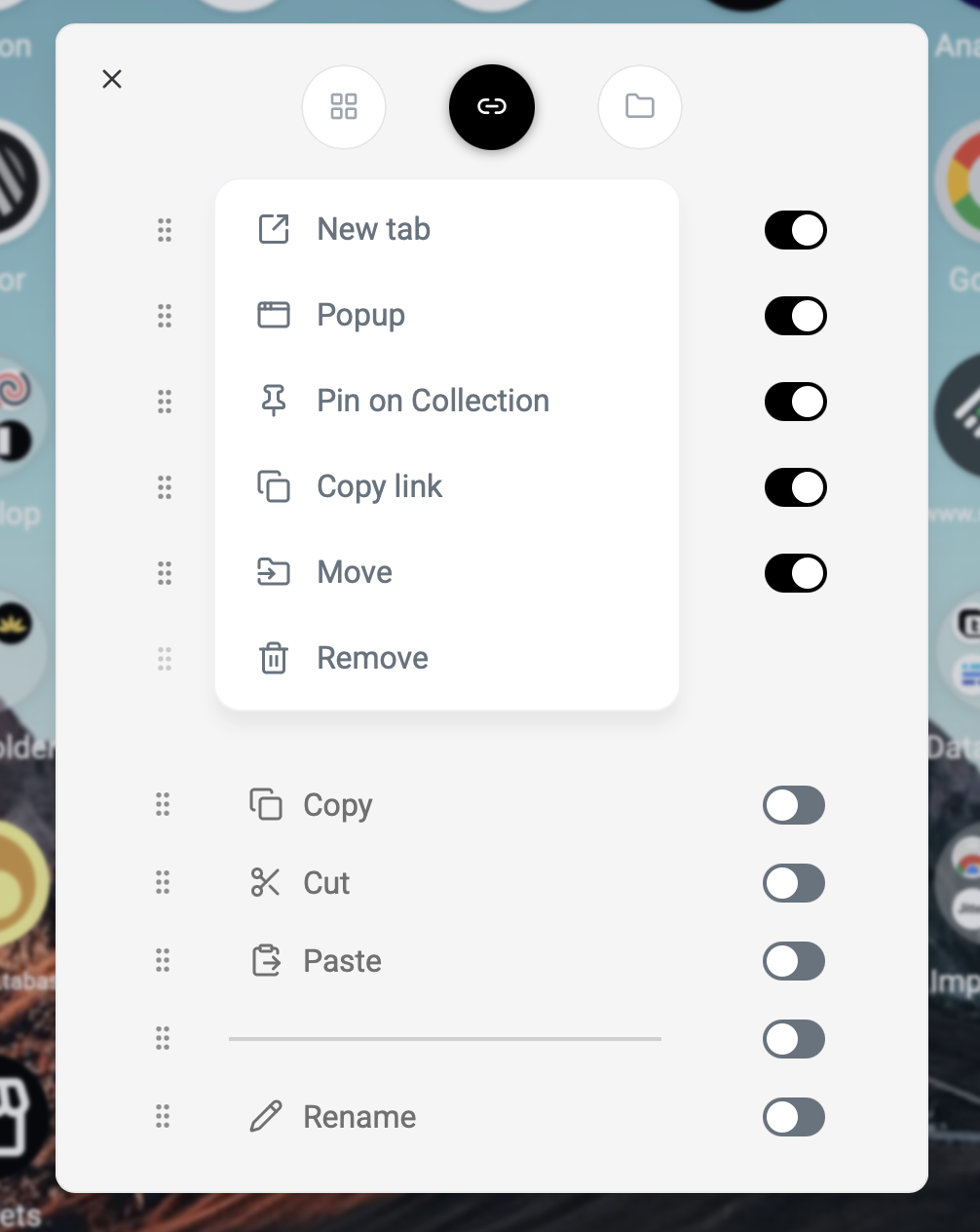 These context menus work for folders, links, and the main context menu, giving you the freedom to customize them as you like.