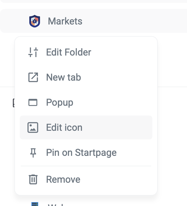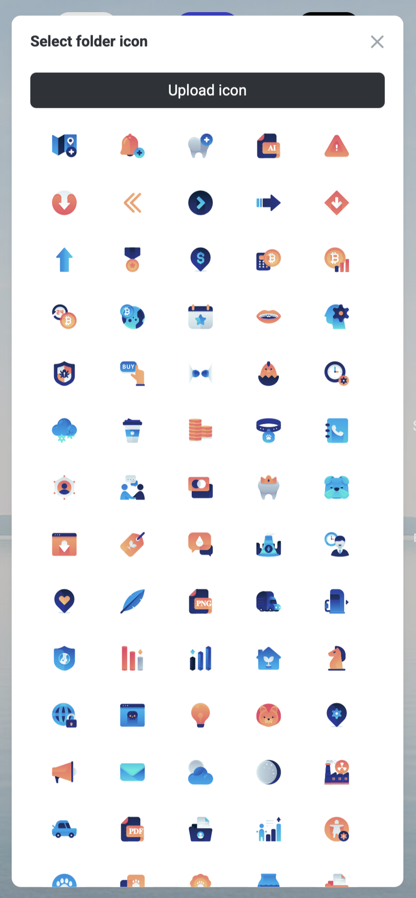 To set up an icon for a folder, go to the navigation bar and right-click the folder you want to change. Select "Edit icon." Once you choose it, you will see all the icons you can use. You can also upload your custom icons.