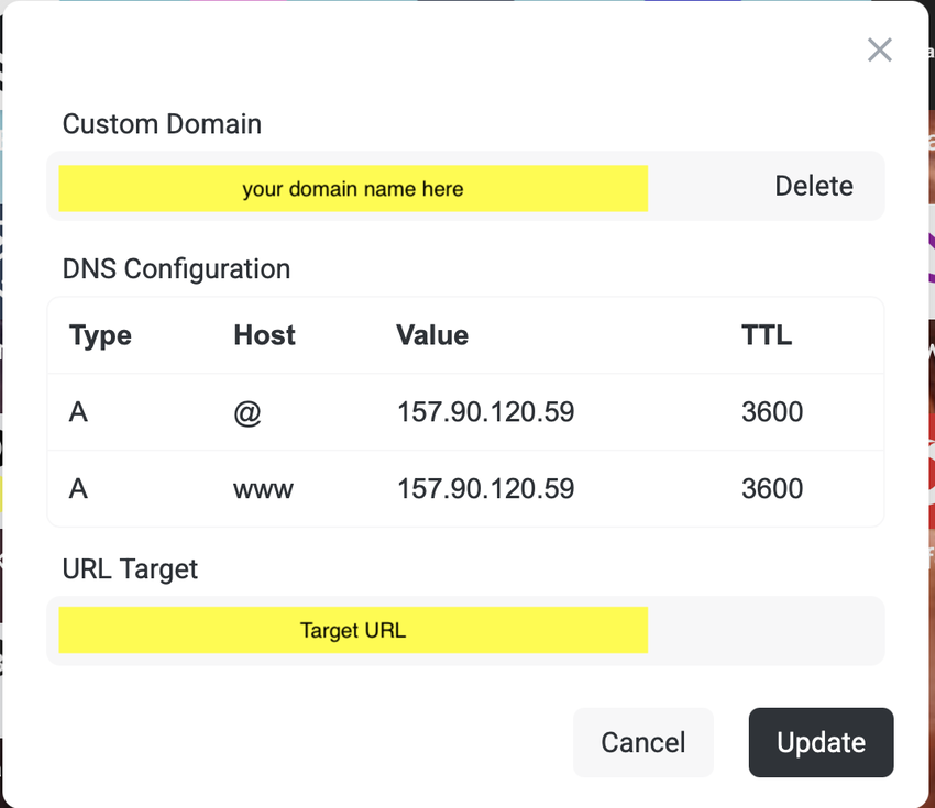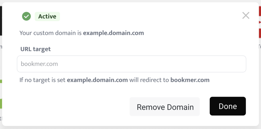 Now it integrates A records for custom domains. You can set up your custom domain or subdomain with DNS values. Once connected with Bookmer, you can share collections using your custom domain. After setting up your custom domain, you can also place a URL target. This means that if a user visits the domain, like "example.com," it will redirect to the target.